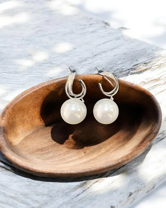 Luxe Curve Pearl Drop Earrings