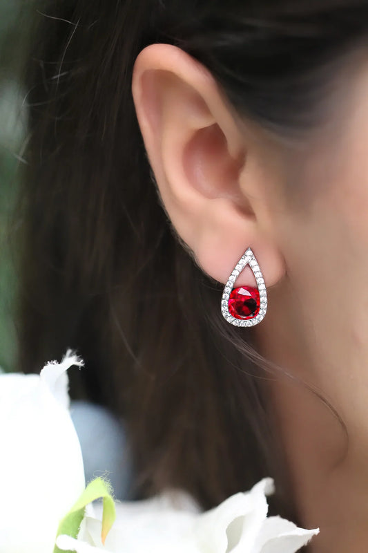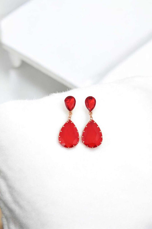 गुलाब सोना चढ़ाया लाल क्रिस्टल ड्रॉप बालियां