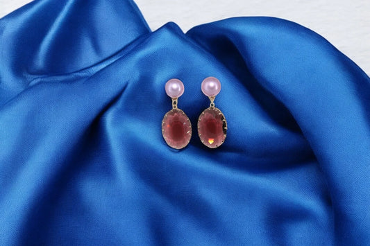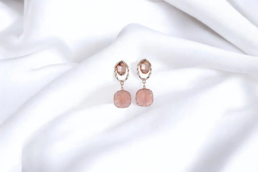 गुलाब क्वार्ट्ज ड्रॉप बालियां