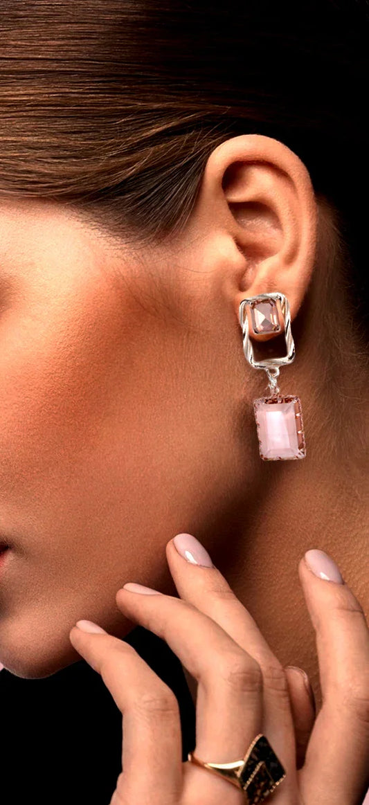 गहरे गुलाबी पत्थरों के साथ रॉयल मिडनाइट झुमका