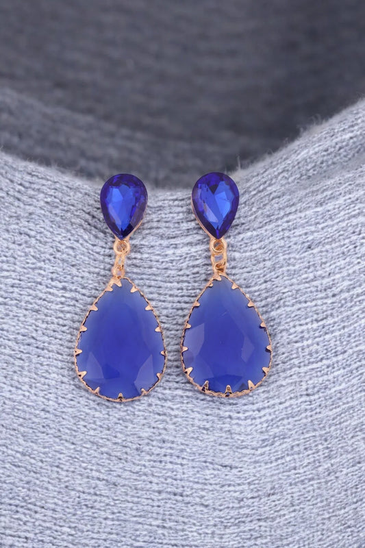 रॉयल ब्लू स्टेटमेंट ड्रॉप इयररिंग्स टियरड्रॉप एक्सेंट के साथ