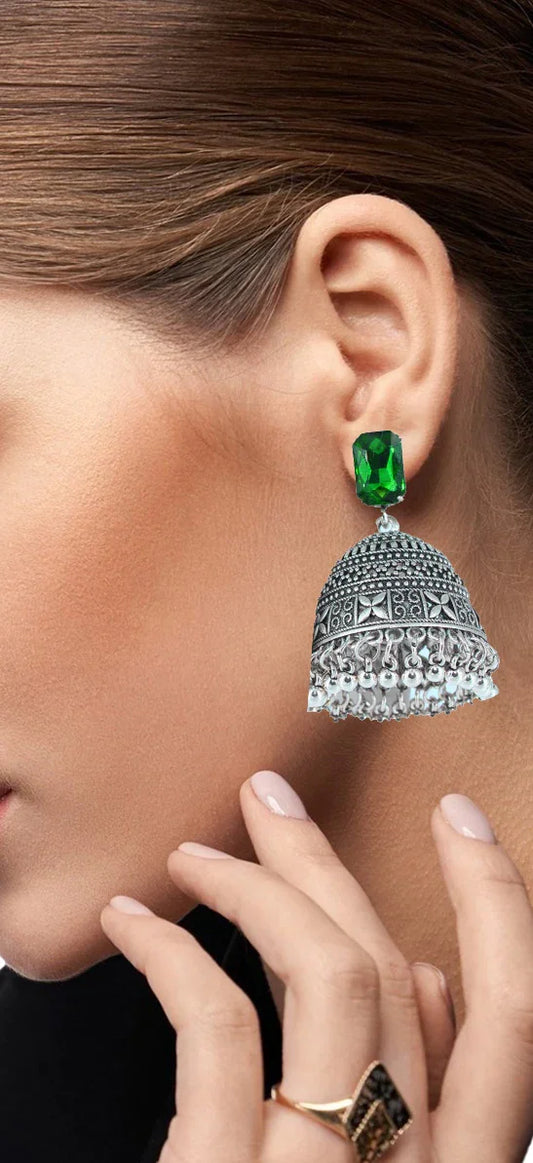 गहरे हरे पत्थरों वाला रॉयल मिडनाइट झुमका