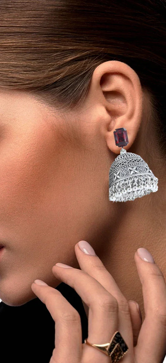गहरे लाल पत्थरों वाला रॉयल मिडनाइट झुमका